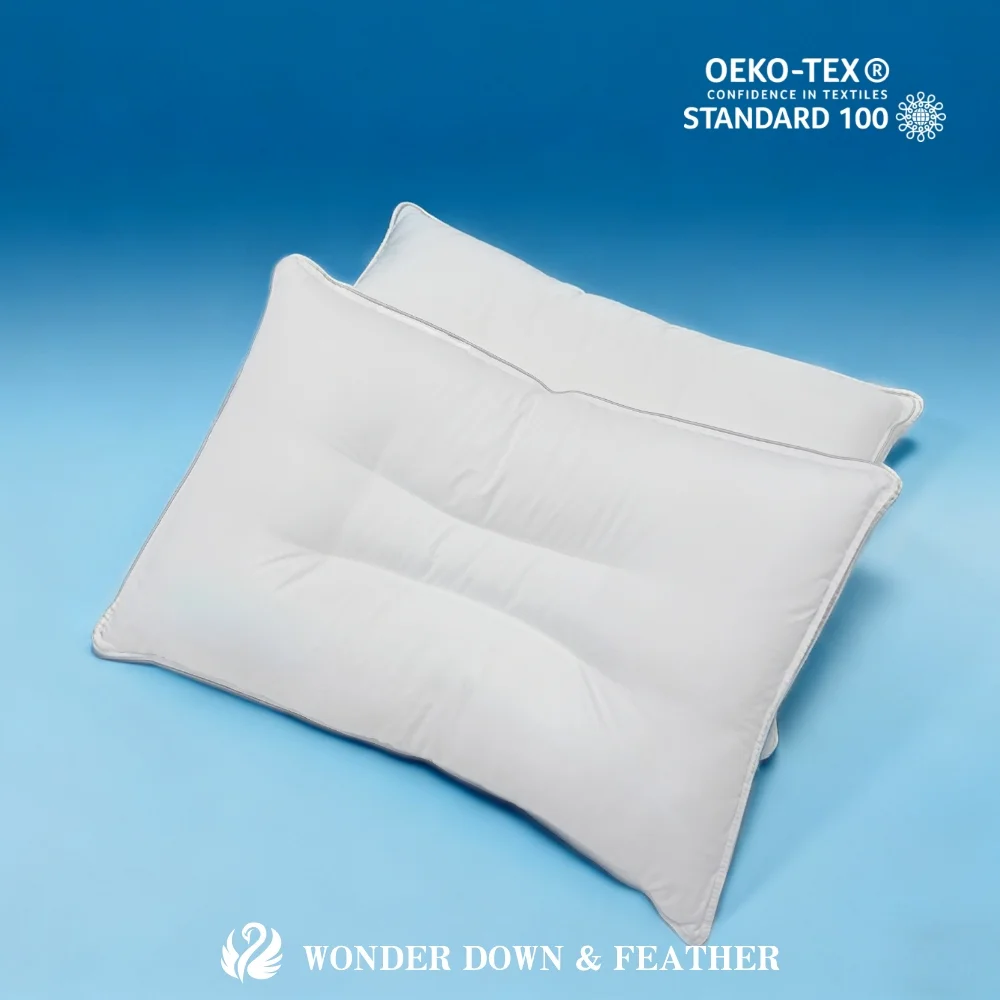 This modular pillow combines a down shell and a fiber core. They can be used together or separated into two pillows, offering customizable height and dual comfort options.