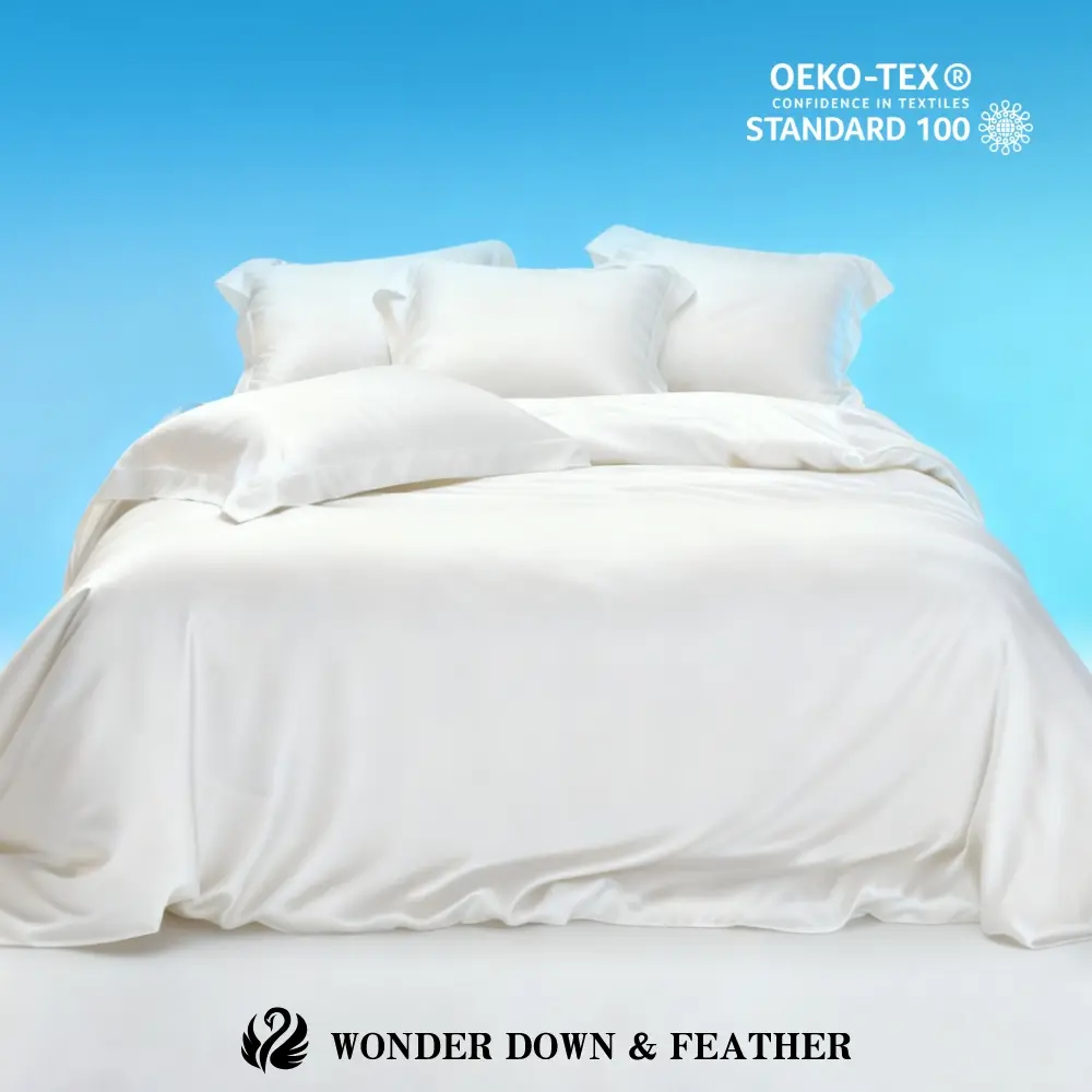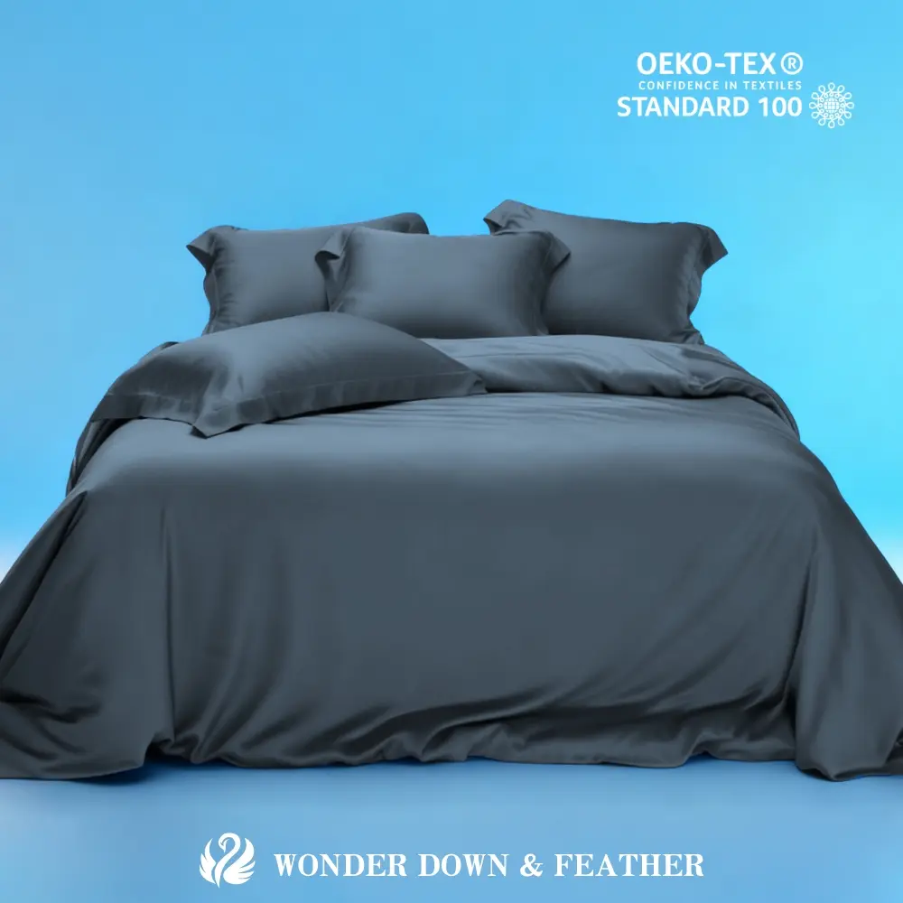 Crafted from premium TENCEL™ Lyocell fibers, this bedding set redefines eco-conscious luxury. Known for its exceptionally smooth, silky texture that becomes softer with each wash, TENCEL™ offers superior comfort for sensitive skin. The fibers' unique moisture-wicking properties efficiently absorb and release humidity, keeping you cool and dry throughout the night for truly restorative sleep. Combined with remarkable breathability and vibrant color retention, this bedding set delivers both enduring performance and undeniable sophistication. Available in a versatile palette of contemporary colors to complement any bedroom aesthetic.
