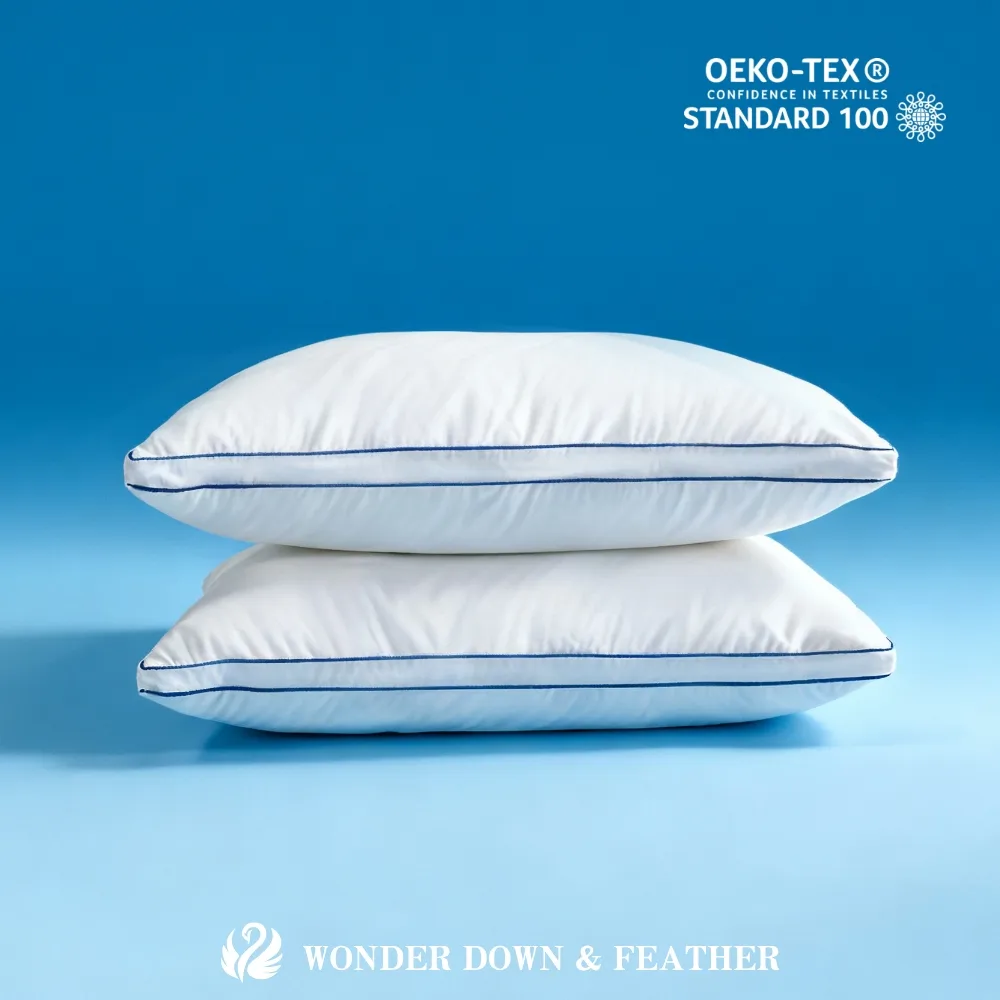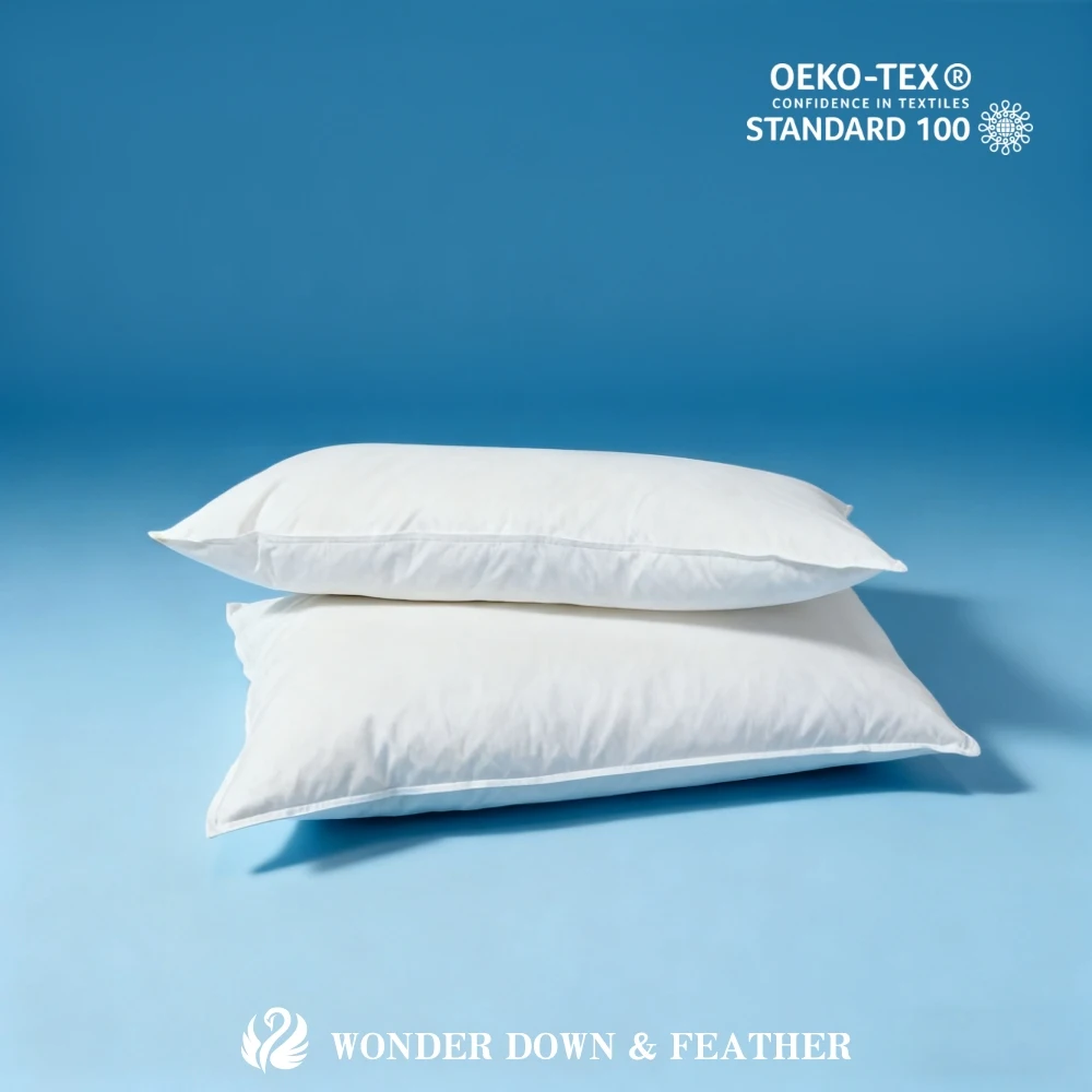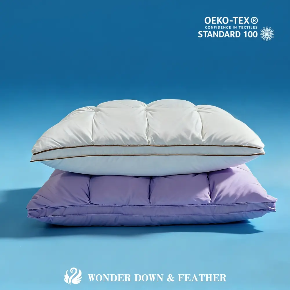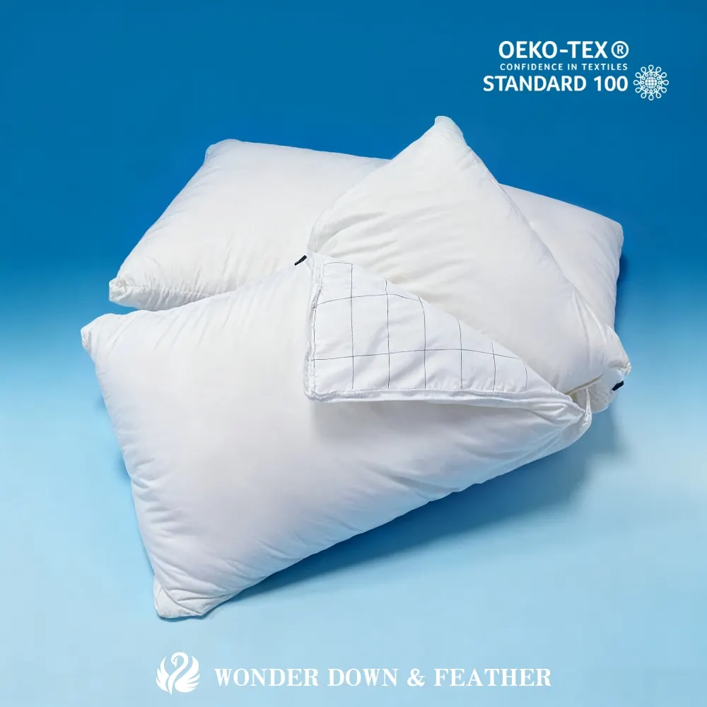 This modular pillow combines a down shell and a fiber core. They can be used together or separated into two pillows, offering customizable height and dual comfort options.