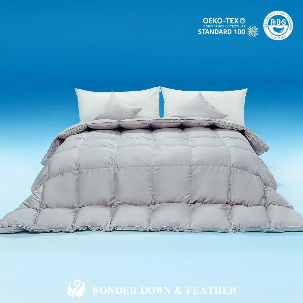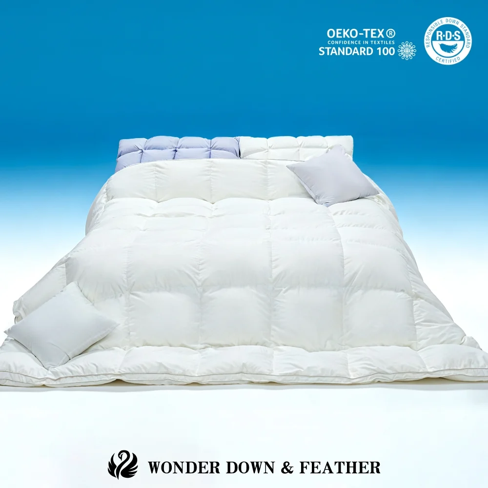 The result is an exceptionally high, resilient, and uniform loft that provides superior, non-shifting insulation and an irresistibly plush, cloud-like appearance. The structured design ensures the down is evenly distributed, eliminating cold spots and enhancing durability. To perfectly match any bedroom aesthetic, we offer this duet in a curated selection of colors and a variety of shell fabrics, including high-thread-count cotton, soft blends, and cozy brushed materials. It is the epitome of customizable comfort and high-end craftsmanship.