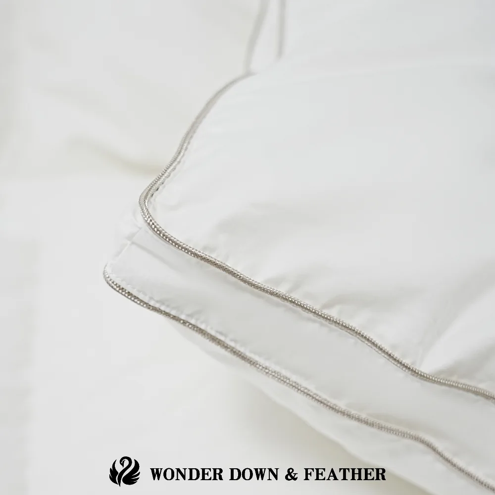 Elevate the sleep experience with our Premium Box-Stitch White Goose Down Duvet, designed for those who seek the ultimate in warmth and luxury. This duvet features a sophisticated box-stitch baffle wall construction with a pronounced dual-piping design. This engineering creates three-dimensional compartments that are generously filled with more premium white goose down than standard models.